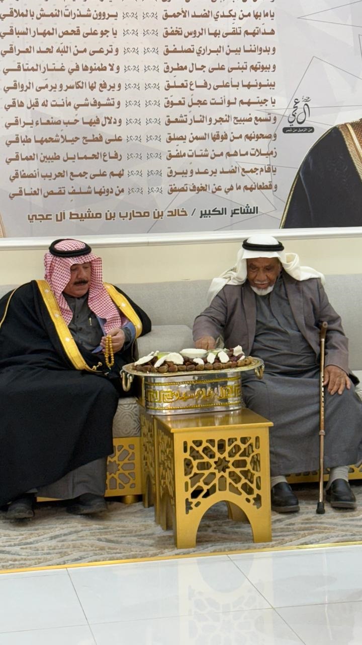 تشرفنا عصر الجمعة 21 – 6 – 1447 هـ في شبتنا المعتادة في منزلنا بالحفير بتشريف الشيخ حاكم بن خلف العياده ومرافقيه ،وذلك بحضور الشيخ عايض بن غوينم النماصي